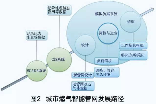 圖2是城市燃氣智能管網(wǎng)的發(fā)展路徑。